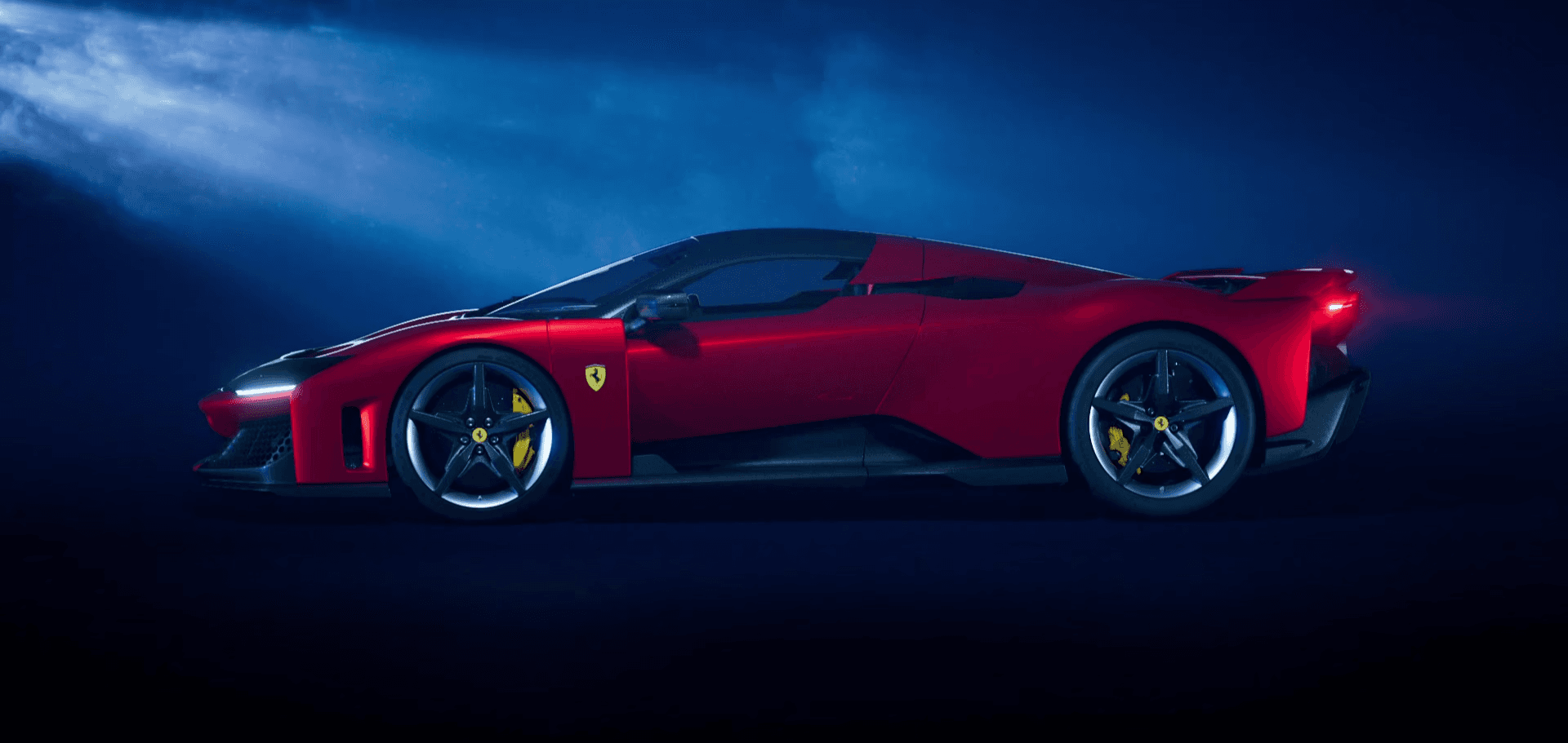The F80 is the product of a creative design study that has led the team of the Ferrari Styling Centre headed by Flavio Manzoni to make a radical change in the visual language of the marque, forging a link between the past and future of Ferrari design. With the intent of assimilating a host of different elements of the design language and DNA of the brand, this study first turned its attention to the aesthetics of the marque’s F1 racing cars to identify the direction for creating a car with a modern and innovative visual identity that can accommodate a driver and a passenger despite offering the uncompromised experience of a single-seater. The contrast between the upper zone in bodywork colour and the lower zone in clear-coat finished carbon fibre accentuates the design of the car, revealing more of its technical side with each new glance. The headlamps of the F80 are concealed in a visor element serving both aerodynamic and lighting functions that gives the car a particularly original appearance. The short-tail rear of the car has two different configurations during use: with the mobile wing stowed or deployed. The tail lights are set into a two-layer structure consisting of the tail fascia and the spoiler, to create a sandwich effect giving the tail an extremely sporty character in both configurations.Powertrain